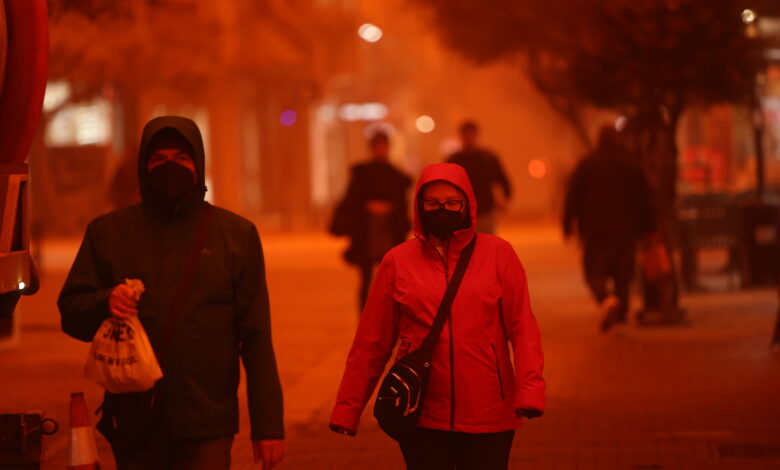 Yunanistan genelindeki kötü hava koşulları devam ederken, Girit Adası’nda gökyüzü Afrika’dan gelen çöl tozu nedeniyle kırmızıya büründü.