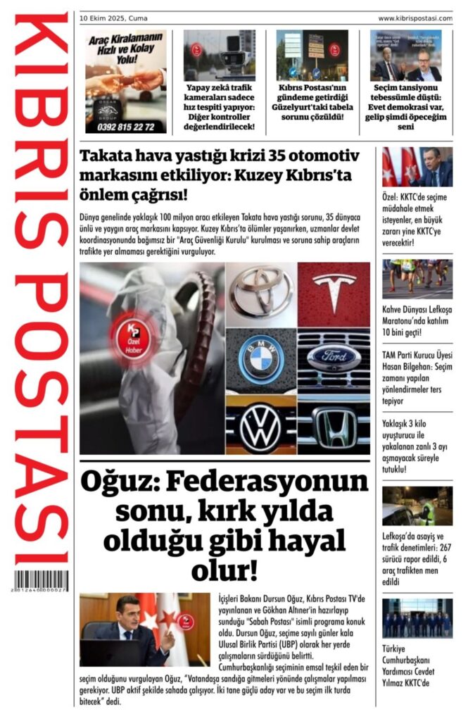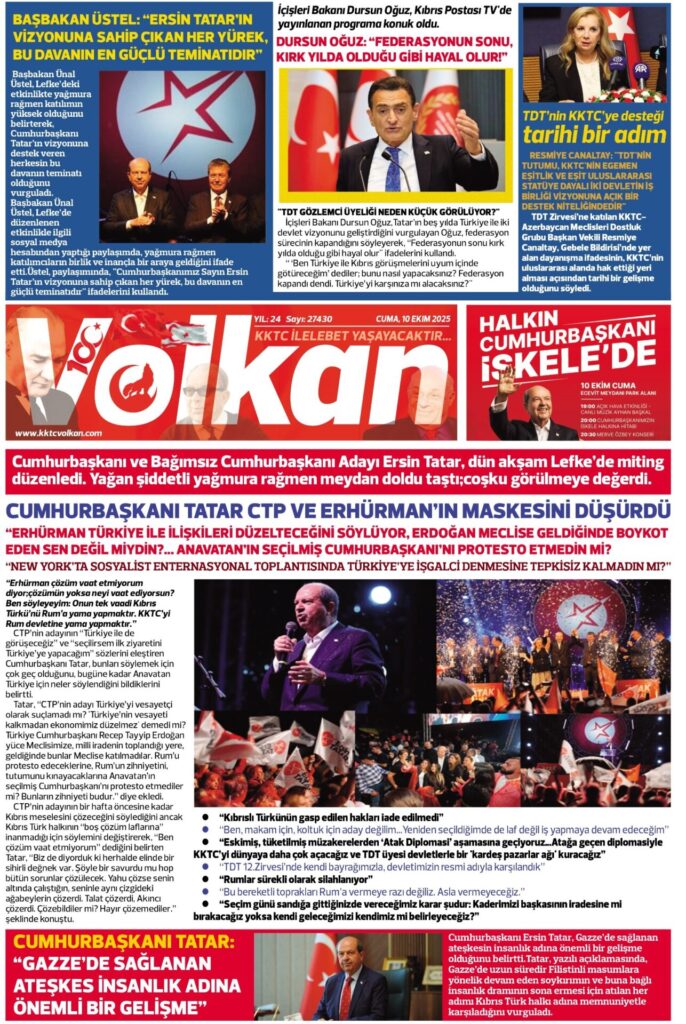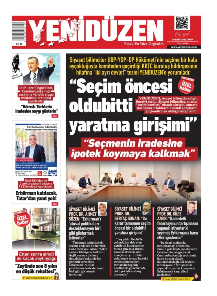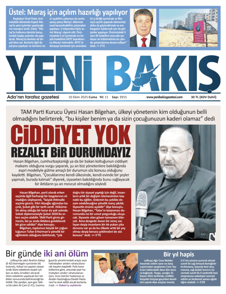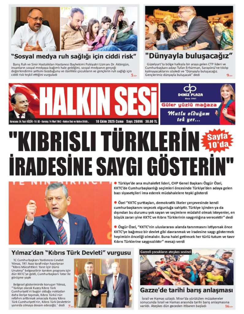 Anasayfa/Kıbrıs/Gazete Manşetleri- 10 Ekim 2025 KıbrısManşetler Gazete Manşetleri- 10 Ekim 2025 6 saat önce 36 Bir dakikadan az Facebook X WhatsApp Telegram 6 saat önce 36 Bir dakikadan az Facebook X WhatsApp Telegram Paylaş Facebook X WhatsApp Telegram E-Posta ile paylaş Yazdır