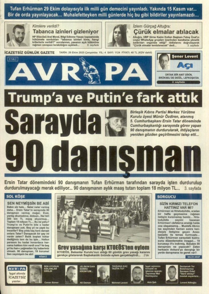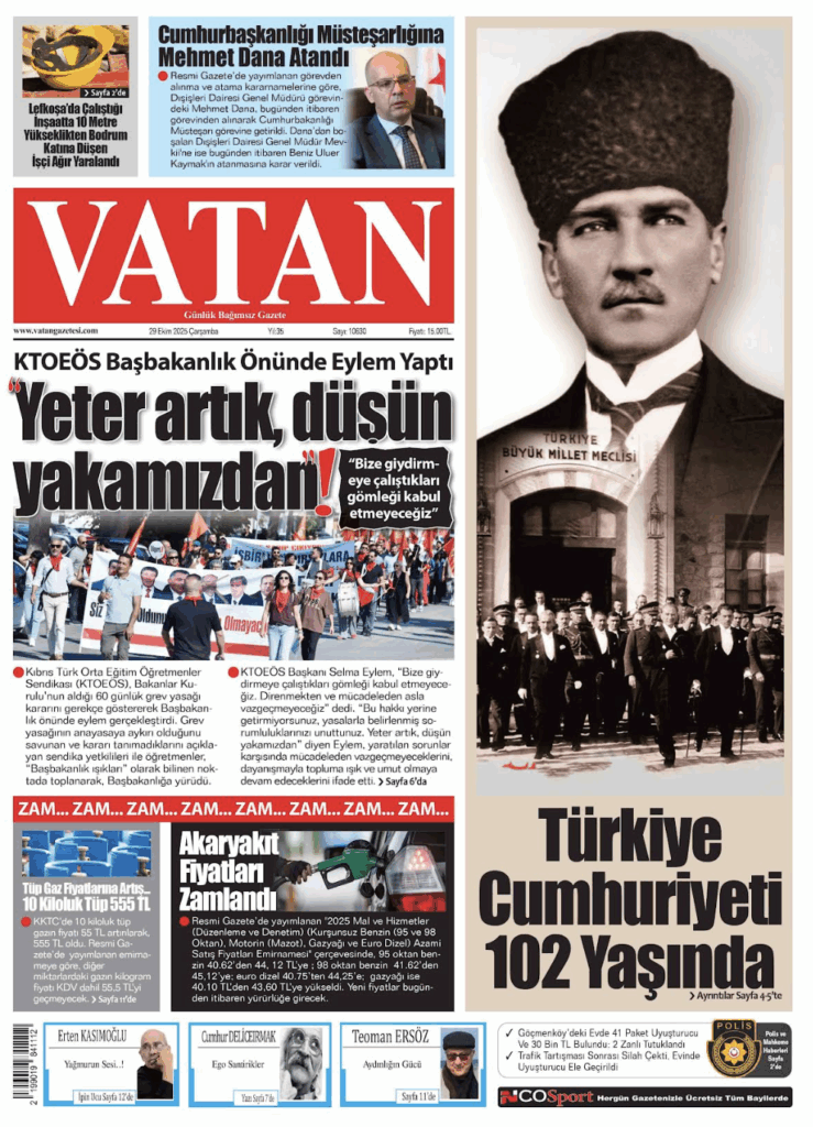 Anasayfa/Kıbrıs/Gazete Manşetleri- 29 Ekim 2025 KıbrısManşetler Gazete Manşetleri- 29 Ekim 2025 3 saat önce 24 Bir dakikadan az Facebook X WhatsApp Telegram 3 saat önce 24 Bir dakikadan az Facebook X WhatsApp Telegram Paylaş Facebook X WhatsApp Telegram E-Posta ile paylaş Yazdır