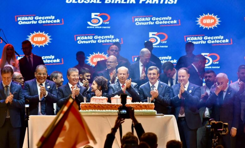Tatar’ın konuşmasının ardından UBP’nin 50. yılı için hazırlanan pastanın kesimi yapıldı.