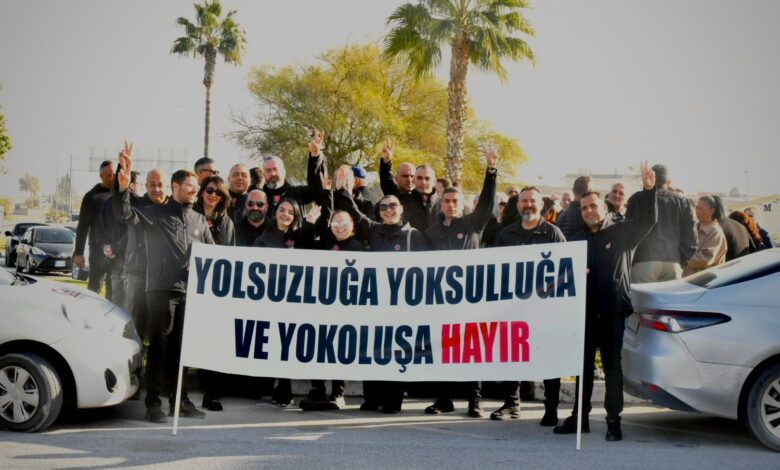 Gönyeli Çemberinde buluşan Kıbrıs Türk Amme Memurları Sendikası (KTAMS), Kıbrıs Türk Kamu Görevlileri Sendikası (KAMUSEN), Kamu İşçileri Sendikası (KAMU-İŞ), Kıbrıs Türk Öğretmenler Sendikası (KTÖS) ve Kıbrıs Türk Orta Eğitim Öğretmenler Sendikası (KTOEÖS) yetkilileri, Başbakanlık binası önüne yürüyüş başlattı.