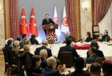 İftar öncesi Öztürkler, konuk bakanlarla TBMM Başkanı Kurtulmuş’un makamında bir araya geldi. TBMM Tören Salonu’nda düzenlenen programa çok sayıda şehit ailesi, gazi ve davetli iştirak etti.
