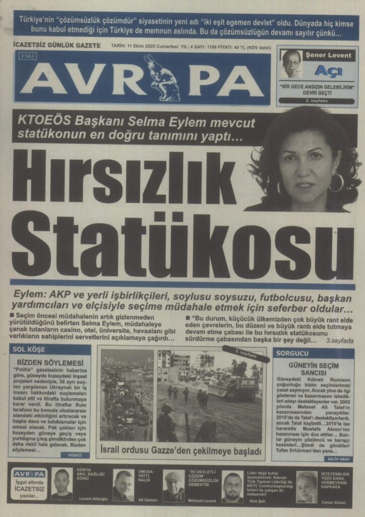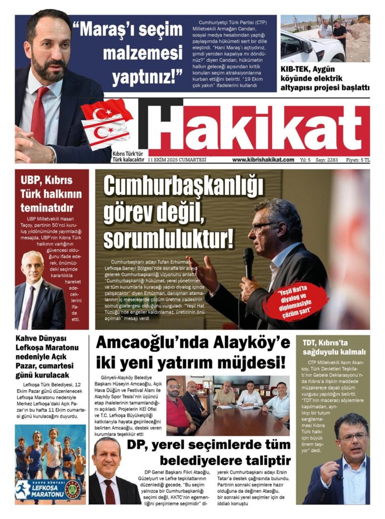 Anasayfa/Kıbrıs/Gazete Manşetleri- 11 Ekim 2025 KıbrısManşetler Gazete Manşetleri- 11 Ekim 2025 4 saat önce 24 Bir dakikadan az Facebook X WhatsApp Telegram 4 saat önce 24 Bir dakikadan az Facebook X WhatsApp Telegram Paylaş Facebook X WhatsApp Telegram E-Posta ile paylaş Yazdır