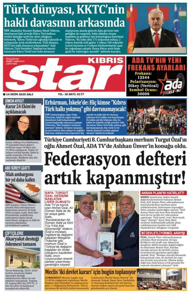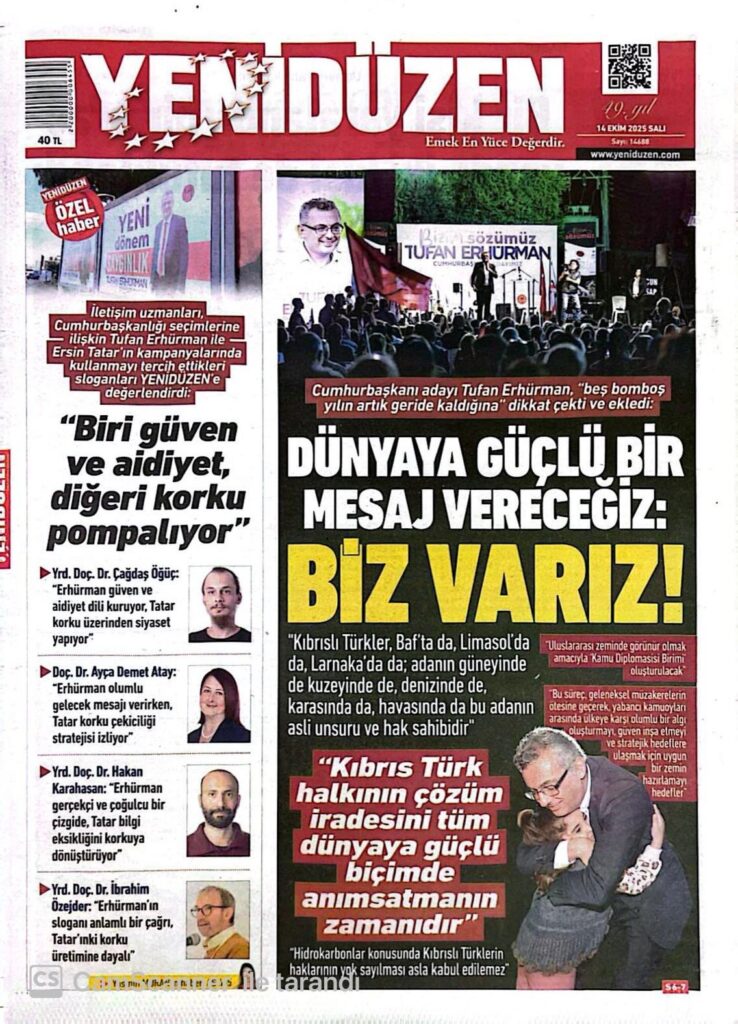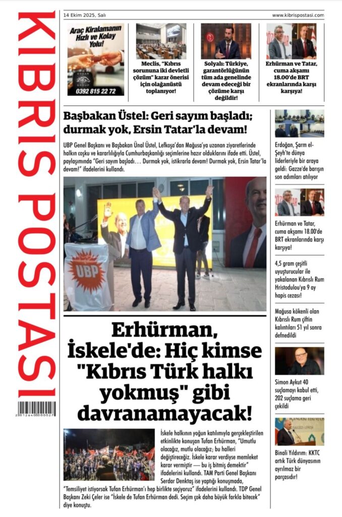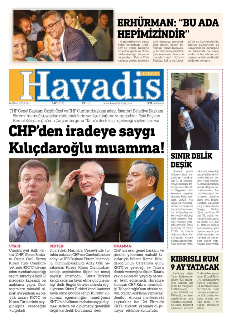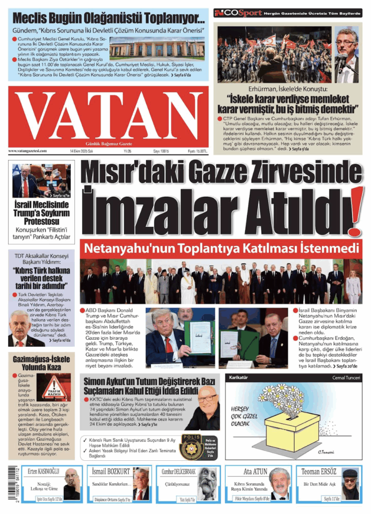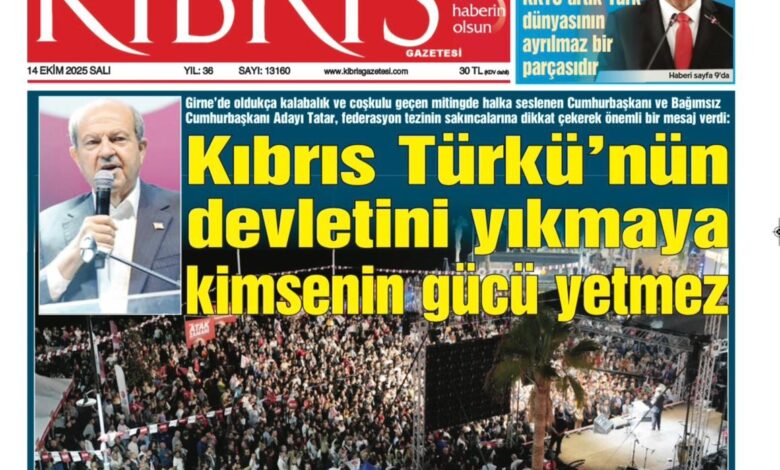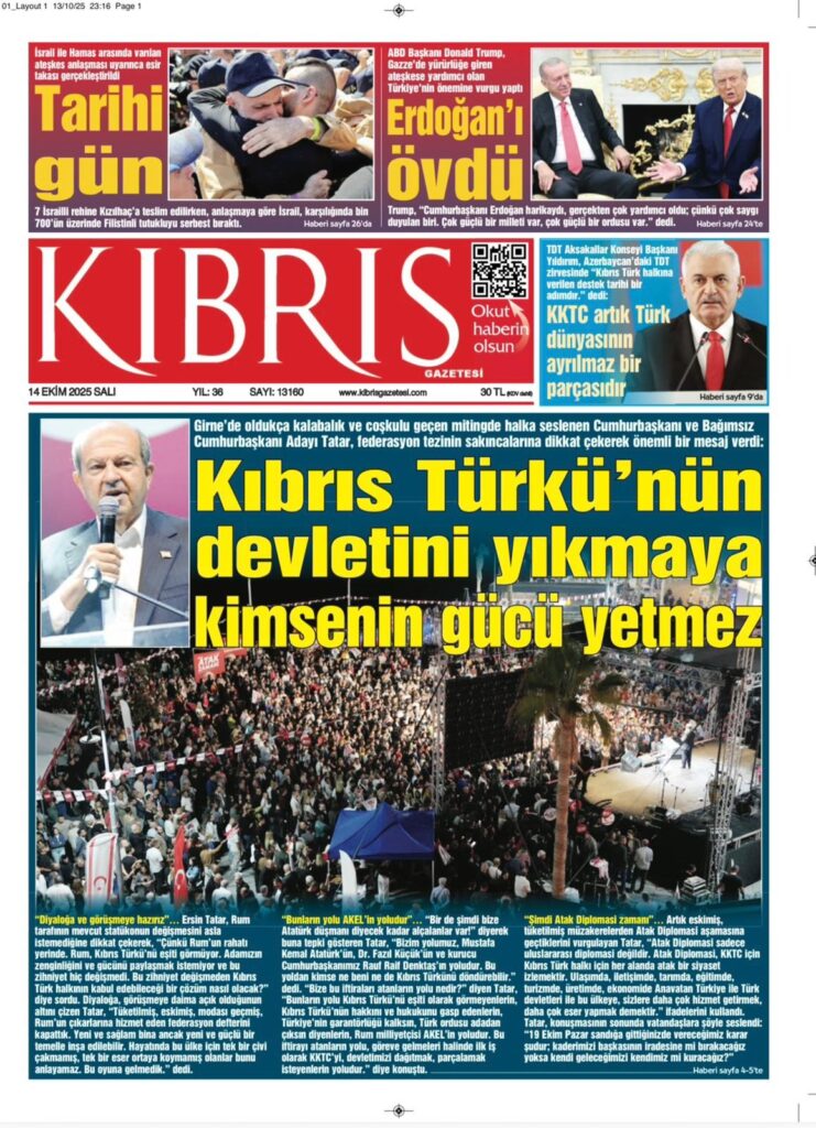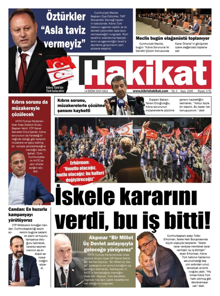 Anasayfa/Kıbrıs/Gazete Manşetleri- 14 Ekim 2025 KıbrısManşetler Gazete Manşetleri- 14 Ekim 2025 3 saat önce 24 Bir dakikadan az Facebook X WhatsApp Telegram 3 saat önce 24 Bir dakikadan az Facebook X WhatsApp Telegram Paylaş Facebook X WhatsApp Telegram E-Posta ile paylaş Yazdır