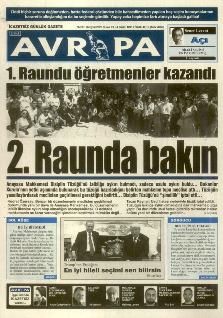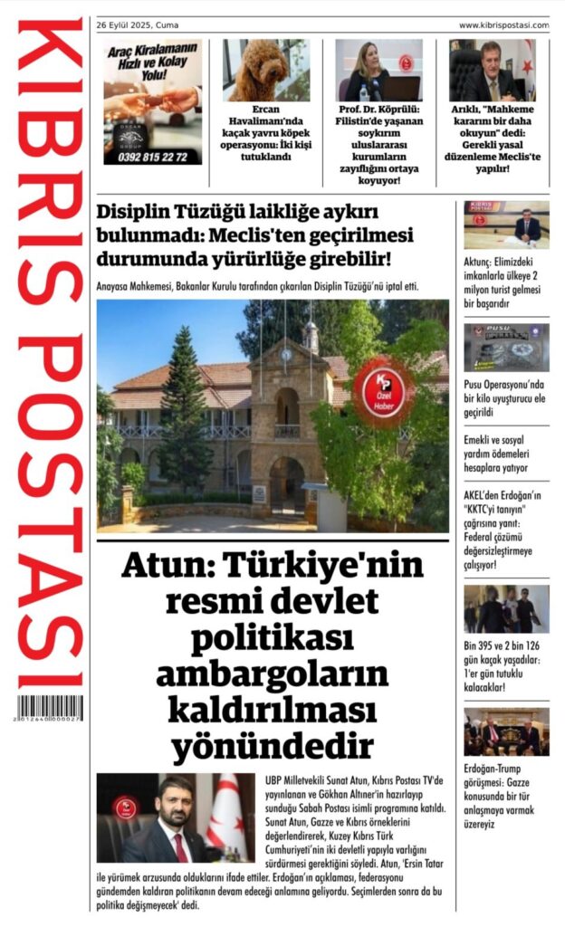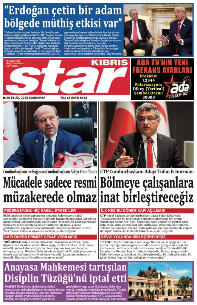 Anasayfa/Kıbrıs/Gazete Manşetleri- 26 Eylül 2025 KıbrısManşetler Gazete Manşetleri- 26 Eylül 2025 2 hafta önce 35 Bir dakikadan az Facebook X WhatsApp Telegram 2 hafta önce 35 Bir dakikadan az Facebook X WhatsApp Telegram Paylaş Facebook X WhatsApp Telegram E-Posta ile paylaş Yazdır
