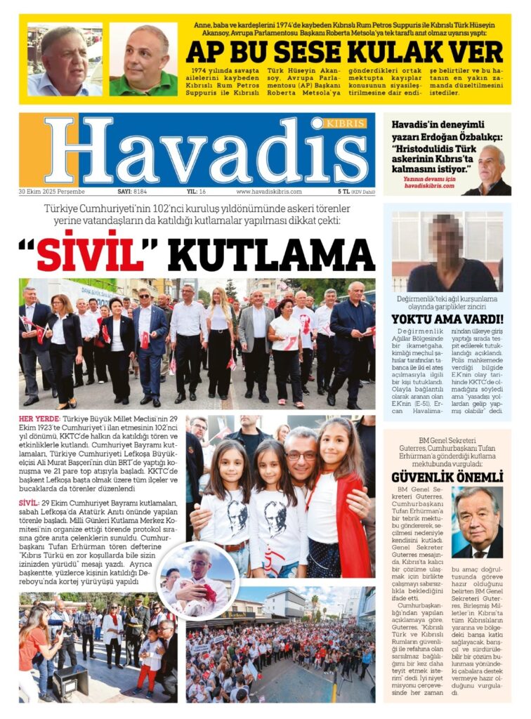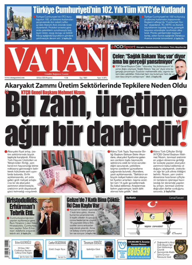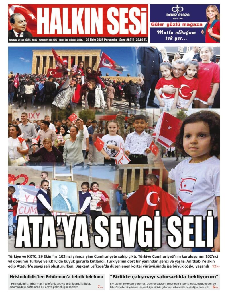 Anasayfa/Kıbrıs/Gazete Manşetleri- 30 Ekim 2025 KıbrısManşetler Gazete Manşetleri- 30 Ekim 2025 30 Ekim 2025 23 Bir dakikadan az Facebook X WhatsApp Telegram 30 Ekim 2025 23 Bir dakikadan az Facebook X WhatsApp Telegram Paylaş Facebook X WhatsApp Telegram E-Posta ile paylaş Yazdır