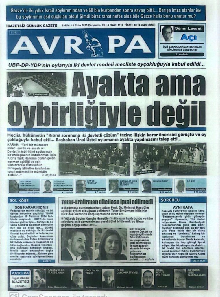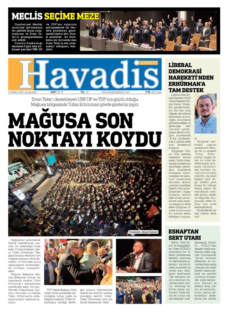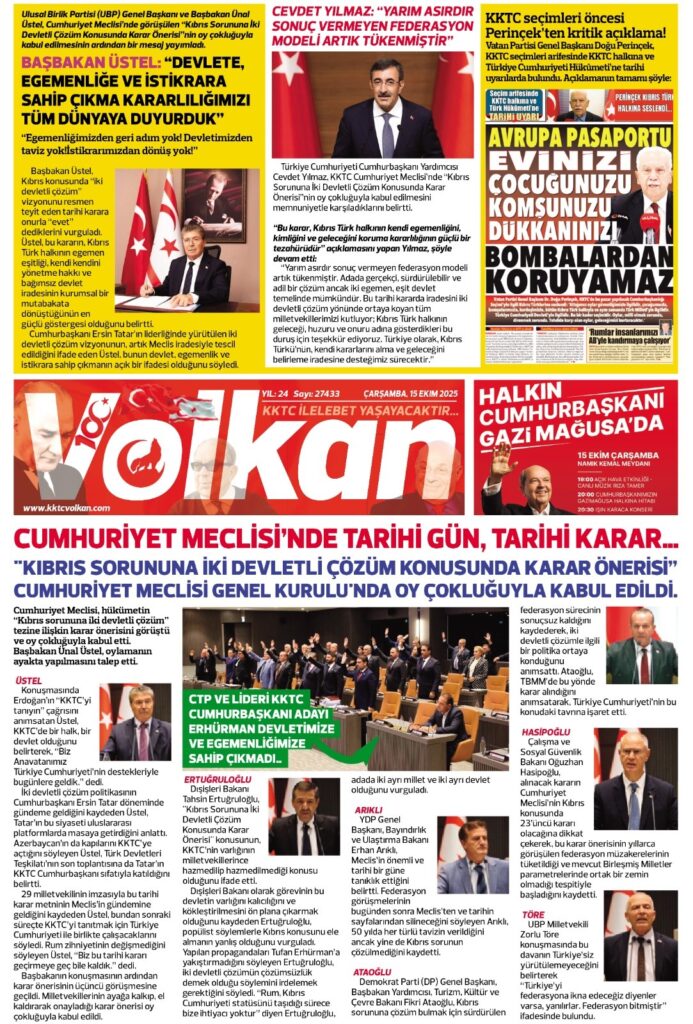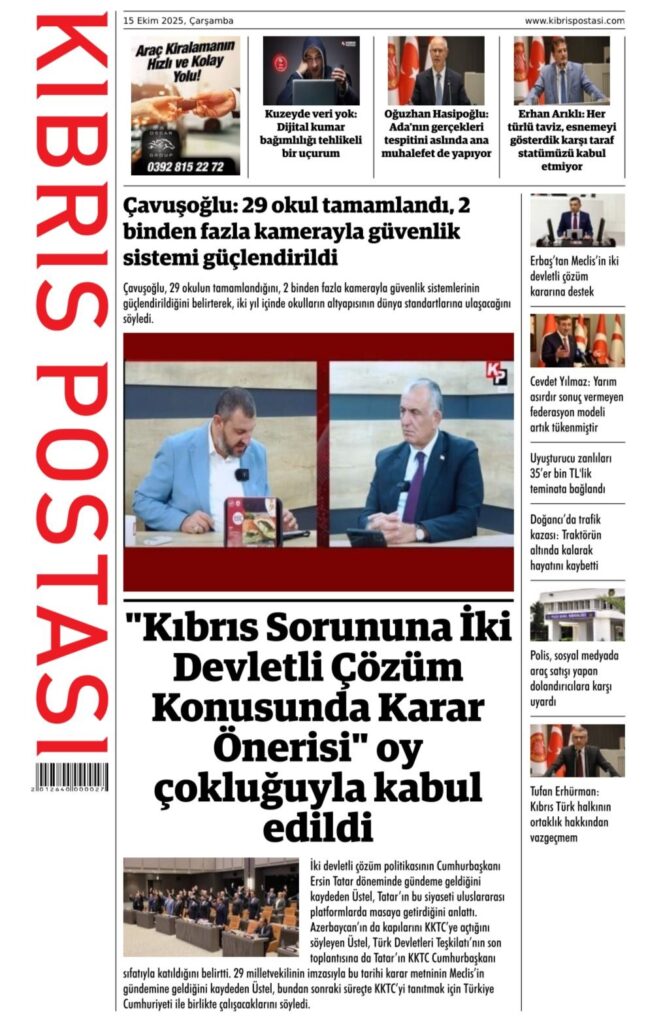 Anasayfa/Kıbrıs/Gazete Mnşetleri- 15 Ekim 2025 KıbrısManşetler Gazete Mnşetleri- 15 Ekim 2025 2 saat önce 28 Bir dakikadan az Facebook X WhatsApp Telegram 2 saat önce 28 Bir dakikadan az Facebook X WhatsApp Telegram Paylaş Facebook X WhatsApp Telegram E-Posta ile paylaş Yazdır