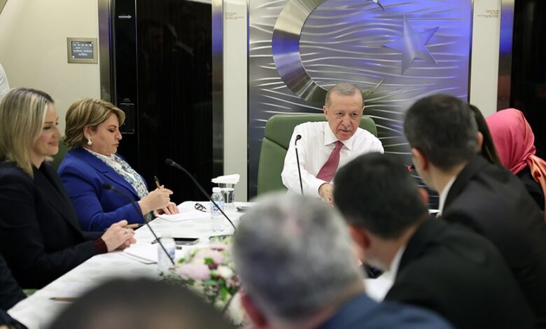 TC Cumhurbaşkanı Recep Tayyip Erdoğan, Türkmenistan’ın başkenti Aşkabat’ta düzenlenen “Uluslararası Barış ve Güven Forumu” sonrası Türkiye’ye dönüşünde uçakta gazetecilere açıklamalarda bulundu ve soruları yanıtladı.