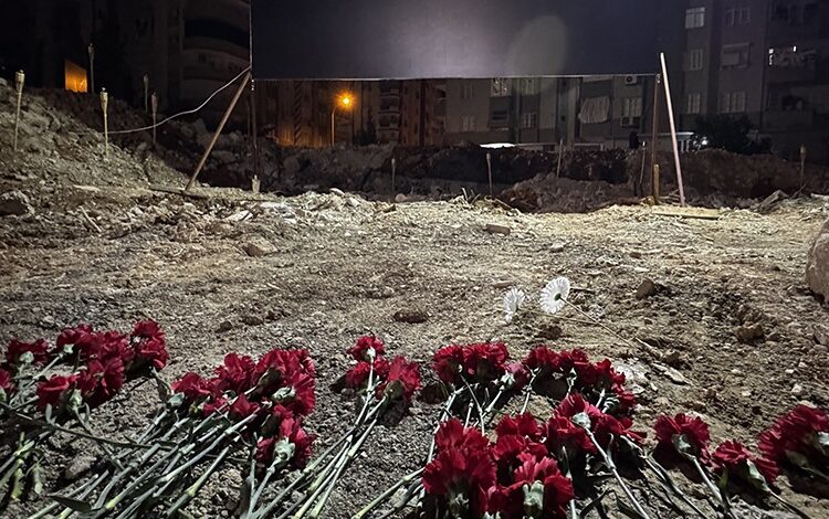 Diyarbakır’da 6 Şubat 2023’te meydana gelen depremlerde yaşamını yitirenler anıldı. Depremlerde merkez Yenişehir ilçesine bağlı Kooperatifler Mahallesi’ndeki Kurtismailpaşa 2’nci Sokak’ta 48 kişinin hayatını kaybettiği Sözel Apartmanı’nın önüne gelenler, yaktıkları mumlar ile karanfilleri saat 04.17’de alana bıraktı.